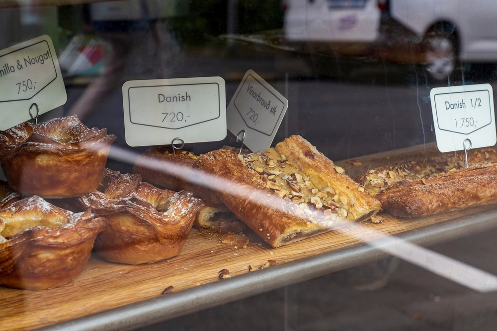 Icelandic pastry in a window in Reykjavik.
